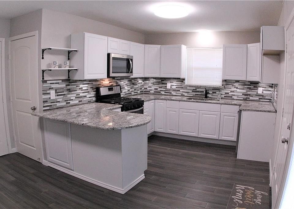 COMPLETELY RENOVATED! Contemporary design. KITCHEN has new cabinets, stainless-steel appliances, granite countertops, deep stainless-steel sink, pull-out faucet with spray, glass tile backplash, decorative shelves, drawers on both sides of island, lazy susan. BATHROOMS redone with new freestanding soaking tub, porcelain tile floors, subway tiles in shower, vanities with granite, contemporary faucets and light fixtures. INSIDE remodeled with new hardwood floors, carpet, doors and door trim, baseboards, LED lighting, walls re-textured, fresh paint. OUTSIDE has new 30-year roof shingles, double pane windows, AC, heater, water heater, garage door with opener, all plumbing replaced, fresh paint.