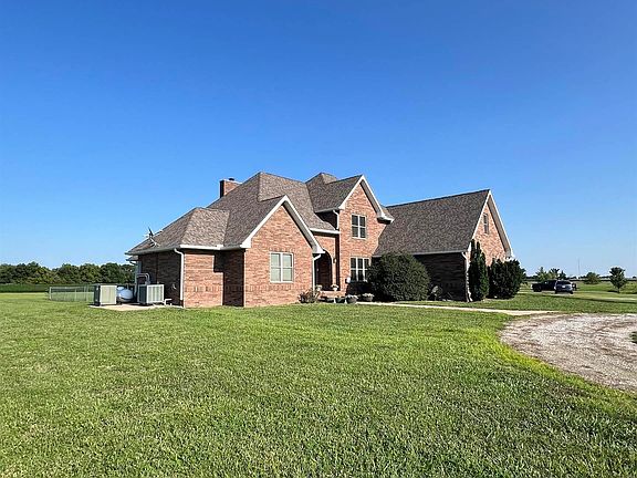Experience the perfect blend of luxury, space, and rural charm with this exceptional property. Nestled on approximately 20± acres, this well-maintained 6-bedroom, 4.5-bath brick home offers over 5,000 sq ft, making it the perfect amount of space and providing room for everyone and every lifestyle. Step inside to an inviting open floor plan featuring vaulted ceilings and a cozy wood-burning fireplace in the living room — ideal for gathering with family and friends. The spacious primary suite includes a generous walk-in closet and a luxurious ensuite bathroom, creating a peaceful private retreat. A finished basement adds even more living and entertainment space, perfect for guests, a home theater, or a game room. Some of the many updates include a Generac generator powering both the house and shed (2022), as well as a new roof and gutters (2022) for added peace of mind. For the outdoors, a large stocked pond teeming with bluegill and catfish invites you to fish or simply relax and enjoy the view. The property also includes 10.5± acres of tillable land (currently planted with beans), offering agricultural potential or rental income opportunities. A 60x30 metal shop with electricity, concrete floor, and its own bathroom opens up endless possibilities for hobbies, equipment storage, or a workshop. The fenced-in yard, mature landscaping, and quiet edge-of-town location complete the package. This rare gem offers the best of rural living with the convenience of town just minutes away. Don’t miss your chance to own this extraordinary property — contact us today to schedule your private showing!