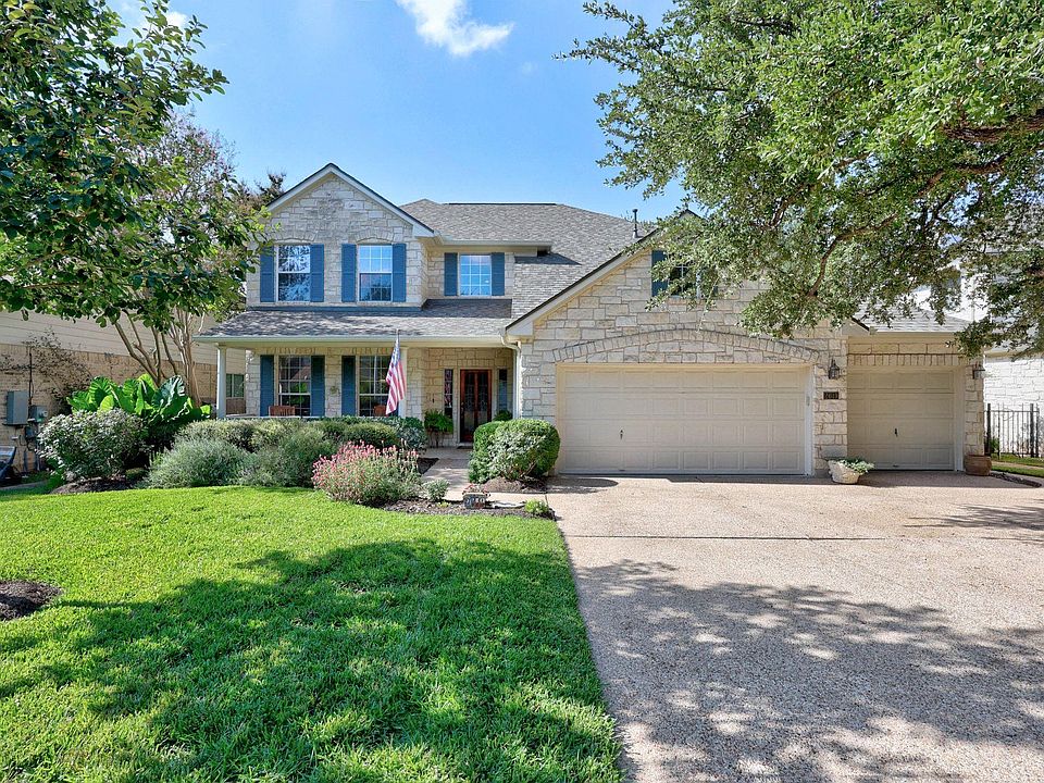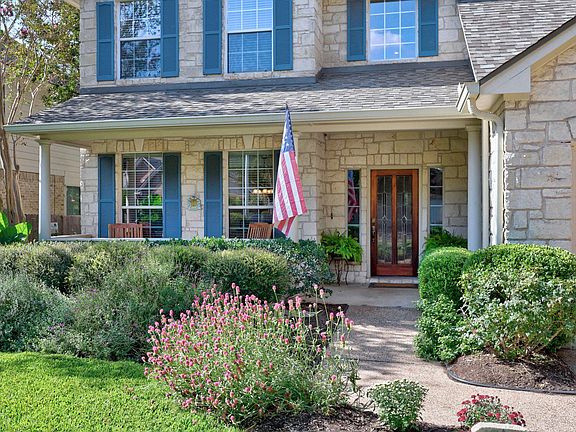 Spacious 4-Bedroom Home on a Tree Covered Lot with Sunroom, Game Room, and 3-Car Garage in Wood Glen! Located in the desirable Wood Glen community, this well-designed two-story home offers 4 bedrooms, 2.5 baths, multiple living and dining areas, and a 3-car attached garage. The first-floor primary suite includes dual walk-in closets, separate vanities, a soaking tub, and a glass-enclosed shower. The main level also features a formal living and dining room, open-concept family room with vaulted ceiling, and a kitchen with curved island, walk-in pantry, and breakfast area that opens to a bright sunroom. Upstairs offers a spacious game room, three secondary bedrooms—all with walk-in closets—and a full bath with dual sinks. Additional highlights include a utility room, powder bath, and a third garage bay with optional work room. Easy family living with space to host gatherings—whether it’s a formal dinner indoors or a relaxed evening on the backyard terrace. The lush, garden-like setting is shaded by mature oaks and bordered by vibrant plants and shrubs, creating a tranquil outdoor retreat. Enjoy quiet mornings on the covered front porch, surrounded by greenery and ideal for connecting with neighbors. Wood Glen is known for its tree-lined streets, community amenities, and convenient access to schools, shopping, and major roadways—making it one of Round Rock’s most sought-after neighborhoods.