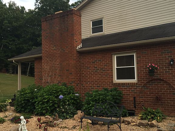 36 year old brick & vinyl two story featuring foyer, living room, dining room, completely renovated eat in kitchen w/appliances, family room with fireplace, three bedrooms, 2.5 baths, laundry room. Full basement with finished rec room with fireplace and attached garage. Part of acreage has creek frontage.