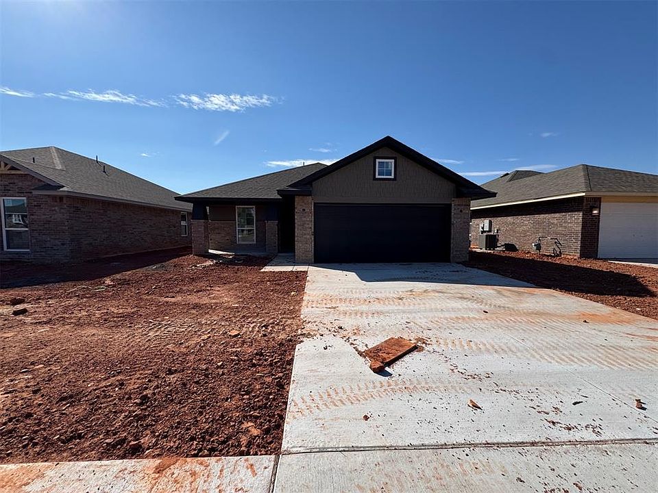 This new home smart design maximizes your usable indoor and outdoor space. Large back covered patio included! The L-shaped kitchen combined with the island give you an increased amount of preparation space and allow for efficient workflow. The kitchen design includes polished features such as under cabinet lighting, a 5 burner gas range, Quartz tops, and wood look tile that flows across all of the main living area creating a great gathering space. The primary suite is separated from the other 2 bedrooms, providing a space to retreat to relax, enjoy endless hot water in the soaking tub or the separate tiled shower. People choose our homes for our energy efficiency practices, and built in tornado safety features that exceed today's industry standards. Aspen Ridge has an incredible location with easy access to I-40, I-240, and a very short distance from Tinker Air Force Base, Lake Stanley Draper and Lake Thunderbird State Park. Call today and set up your showing!