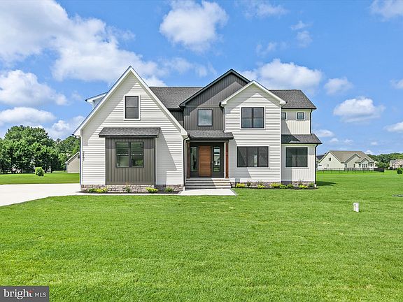 Introducing 26193 Tuscany Drive, a builder’s showpiece nestled in the sought-after community of Kingston Ridge. Resting on nearly three-quarters of an acre of flat, cleared land, this brand-new WN Builders home (2025) effortlessly blends contemporary sophistication with timeless craftsmanship, offering a lifestyle that is both luxurious and welcoming. From the moment you arrive, the striking black-and-white palette paired with natural wood and neutral stone creates extraordinary curb appeal. A grand entrance beckons you inside, where you are immediately immersed in an atmosphere of refined elegance. Exquisite millwork, thoughtfully designed built-ins, and curated lighting details set the tone for what lies ahead. The heart of the home is the soaring great room, crowned by an illuminated two-story tray ceiling that makes a dramatic statement. A sleek gas fireplace anchors the space, while upgraded trim and 9-foot ceilings create an open, airy ambiance. This gathering space flows effortlessly into the gourmet kitchen and dining area, an entertainer’s dream. In the kitchen, no detail has been overlooked. Gleaming quartz countertops stretch across generous workspaces and cascade in a waterfall edge over the grand center island, which offers cabinetry storage on both sides and a deep, undermount sink. A full-height, one-piece quartz backsplash provides a clean, modern backdrop for the six-burner gas range with its custom vent hood and pot filler. Shaker-style cabinetry accented with matte black hardware completes this magazine-worthy space. The kitchen footprint expands seamlessly into a spacious butler’s pantry, appointed with additional quartz counters, a beverage cooler, a drawer microwave, and abundant storage, ideal for prep and keeping your main kitchen pristine during gatherings. The main-level primary suite feels like a private retreat, featuring a mini version of the illuminated tray ceiling showcased in the great room. The ensuite bath is a spa-like sanctuary, with gleaming large-format tile flooring, a frameless glass walk-in shower wrapped in coordinating tile, and a dual-sink vanity. A generous walk-in closet stands ready to be customized for any wardrobe. Also on the first floor, you’ll find a second bedroom and a well-appointed powder bath for guests, a spacious laundry room, and a mudroom with custom built-ins offering interior access to the oversized, side-load two-car garage. Ascend the beautifully crafted staircase, another showcase of precise millwork, to the upper level, where a bright loft provides additional living and entertaining space. This flexible area serves as the hub for the home’s remaining bedrooms. A second primary suite awaits, complete with its own private bath and walk-in closet, ideal for multi-generational living or long-term guests. Three additional bedrooms on this level are each thoughtfully finished, featuring the same attention to detail and refined trim work found throughout the home. An additional hall bathroom ensures comfort and convenience for everyone. Beyond the interiors, the home offers a sprawling concrete patio ready to become a screened porch or outdoor living space, while Smart Home wiring has been thoughtfully installed to accommodate your modern lifestyle. Ideally situated just a ten-minute drive from downtown Millsboro, with its shops, dining, and conveniences, and offering easy access to Route 30 and the vibrant resort towns along the Delmarva coastline, 26193 Tuscany Drive is a celebration of inspired design and extraordinary craftsmanship. This is more than a new home, it’s a place to create a life you’ll love for years to come.