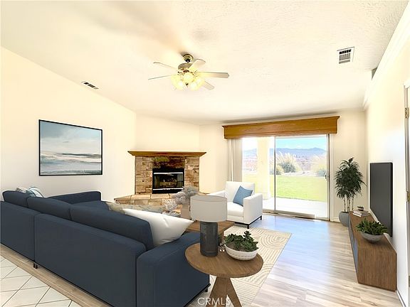 Welcome to Silver Lakes community! With Resort Like Lifestyle boasting Two LAKES, This private oasis is located in Helendale which is between Victorville & Barstow. This Spacious 1971 sqft home built in 1999 is a 3-bedroom, 2-bathroom residence sits just across the street from South Lake. The views in the front yard look at the lake , and not a home. The Biggest view is the Huge Panoramic views in the Large backyard, no homes right behind you, just expansive open views of the mountains ... so enjoy them under the Covered patio and included porch swing. The Living Room features a stone fireplace, ceiling fan and large glass slider to enjoy those backyard views.