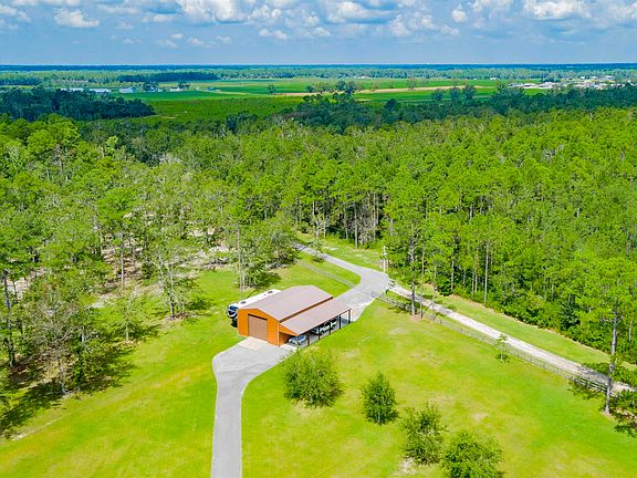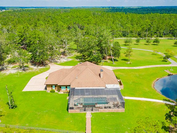 Welcome home to this gorgeous acreage property sprawling over 13 -/+ acres situated directly on Hammock Bay. This gated and fenced property offers complete privacy away from the hustle and bustle. Enjoy the expansive outdoor area complete with a fully stocked pond, boathouse with two boat lifts and composite decking that leads up to the home. The home is approximately 5,500 sq ft with an exceptional floor plan. The front porch area features Peaky Cypress ceilings, and three sets of Spanish Cedar front doors. Upon entering the property, you're met with high ceilings, custom wood archways and formal dining room. Down the entrance hallway is the spacious living room that is flooded with natural light. Following on from there is the custom gourmet kitchen complete with dining area, granite countertops throughout, two dishwashers, gas cooktop, pantry and separate full size refrigerator and freezer custom made to mirror the beautiful cabinetry. Off of the interior living room is the well appointed great room that overlooks the amazing outdoor area. This room features a gas grill, two large seating areas and gas fireplace. This room is the perfect epitome of indoor/outdoor living. Here you will also find the staircase that leads up to the home movie theatre. Outside you're met with a 37 x 66 completely enclosed resort style pool area with an amazing outdoor kitchen equipped with top of the line appliances such as a Wells deep fryer, Lynx gas cooktop/grill and under counter Ice-O-Matic ice maker. The pool area really shines at night with the Pentair App controlled fire bowls and hearth electric circular fire pit. Relax in the built in sun loungers, warm up by the fire or wander on down to the boathouse for a fish and evening sunset. As if that wasn't enough, this property also has a large RV garage/barn that is fenced and gated with commercial roll up doors. This property truly has it all and is one of a kind! Schedule your showing today to take in the beauty for yourself.