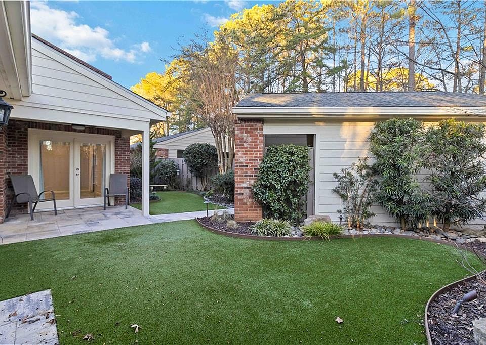 Welcome home to this stunning, fully renovated, truly MOVE-IN READY single-story END UNIT tucked away in the heart of Sandy Springs. Freshly painted in January 2026 and thoughtfully redesigned throughout, this spacious home offers a beautifully landscaped private backyard with year-round greenery, a two-car carport with additional storage, and a warm, inviting interior filled with custom touches. Every detail has been meticulously upgraded: new lighting, custom arched doorways, California Closets, fully remodeled kitchen and baths and extensive built-ins in the den, including a custom desk and cabinetry. Additional enhancements include new flooring and carpet, a tankless water heater, and a whole-home surge protector. The kitchen is a true showpiece, featuring top-of-the-line LG appliances—including a gas range—and elegant finishes that make cooking and entertaining a joy. The oversized primary suite offers a custom closet with exceptional storage, while the ensuite bath features a beautifully tiled shower and an added closet designed to house a full-size stackable washer and dryer with room to spare. Glass doors along the back of the home frame the lush, low-maintenance yard, creating a serene backdrop for everyday living. This private outdoor oasis is perfect for unwinding or hosting friends. No expense or detail was overlooked in this exceptional renovation. Quiet and peaceful yet minutes from premier shopping, dining, and major highways, this home is truly one of a kind.