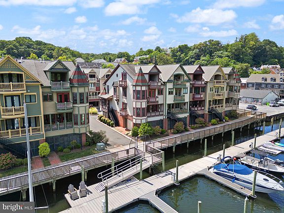 Welcome to this stunning end-unit Victorian home located in the exclusive Gaslight Landing waterfront community in historic Occoquan. With only twenty homes in the neighborhood, this luxurious residence offers a rare opportunity to enjoy riverfront living, complete with a deeded boat slip providing private access to the scenic Occoquan River. Spanning three beautifully finished levels and accessible by your own private elevator, this home is filled with thoughtful updates and elegant finishes throughout. Beautiful hardwood floors on all three levels. In 2024, the owners upgraded the home with new ceiling fans in every room, stylish lighting fixtures on the main level, a brand-new washer and dryer, a luxurious sauna, custom blinds installed throughout the entire house, and a new kitchen faucet to complete the refreshed kitchen. The main level features an open-concept layout designed to maximize natural light and showcase spectacular water views. The living room opens through French doors to a spacious deck which is one of the best spots to relax and take in the peaceful surroundings. A cozy turret nook just off the living room provides the perfect space for a home office or reading corner. Enjoy fires in the gas fireplace on chilly days. The bright kitchen offers KitchenAid stainless steel appliances, granite countertops, a pantry with pull-out shelving, a charming window seat, dining area, and even a built-in crumb catcher under the sink. The welcoming open dining room is perfect for entertaining. A convenient half bath, a coat closet, and a whimsical under-stair closet complete this level. On the second floor, the expansive primary suite serves as a true retreat, featuring a private sitting area, a second turret, a walk-in closet, and a luxurious en-suite bathroom with a jacuzzi tub and walk-in shower. From the Juliet balcony in the primary suite, you can step outside to enjoy sunrise views over the marina or stargaze at night. The second bedroom features another en-suite bathroom and also includes a balcony overlooking the quaint streets of Occoquan. The brand new washer and dryer are conveniently located on this level. The top floor offers incredible flexibility with a spacious third bedroom that can easily function as a guest suite, recreation room, or hobby space. This level includes a wet bar, a third full bathroom, and access to another large balcony overlooking the river, perfect for entertaining or enjoying quiet moments by the water. Another balcony on the street side provides extra light and views. Additional features include a built-in sprinkler system for peace of mind, a covered carport that comfortably fits up to three vehicles, a utility shed with a sink, and space to store kayaks and other gear. Located just steps from the heart of historic Occoquan, this condo is a short stroll to charming boutiques, waterfront restaurants, the annual craft fair, and events at River Mill Park. With easy access to I-95, Fort Belvoir, and Washington, D.C., this one-of-a-kind waterfront home offers an unmatched combination of luxury, convenience, and lifestyle. Located 23 miles to Reagan Washington National Airport and 29 miles to Dulles International Airport.