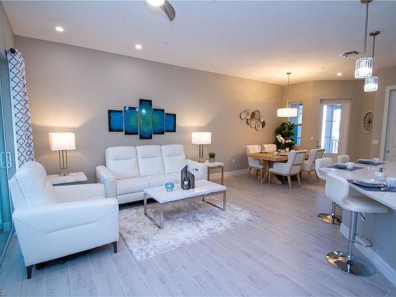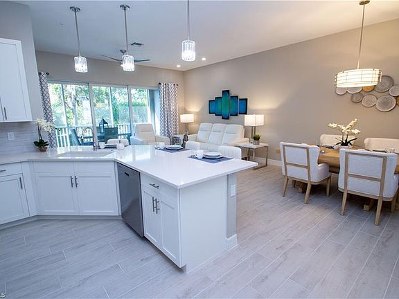 This beautiful brand new second floor condo was a model.Renting May through December at $2500 a month. Be one of the first to enjoy the privacy and lake view from the lanai and brand new furniture and appointments in this condo. This condo has been professionally decorated, has 3 sunny bedrooms, a spacious living room, dining area and a well-stocked kitchen. This upstairs unit offers high ceilings, a view of the lake at Fiddler's creek from the lanai, and split floor plan. The home has an oversized one car garage and 3 beautiful BR (one king, one queen and a third one that has office space and a pull out bed. Antilles -the community, is situated on 54 acres of lush landscaping, two lakes and is surrounded by an untouched nature preserve. Some of the amenities include a walking path around Kingfisher lake, fountains, a spacious clubhouse with a zero entry pool, spa, fire pit, and cabana for entertaining. Inside the Flamingo club, one will find a full fitness center, library, business center, gathering room. Outdoor activities include: 4 pickleball courts, 2 bocce courts, a putting green and golf cart parking. Resort like living in this community is second to none and close to Marco Island and downtown Naples. Relax by the pool, hot tub, eat outside at the cabana which has a fully equipped outdoor kitchen with three grills. Come and see what life is like in Antilles Naples.