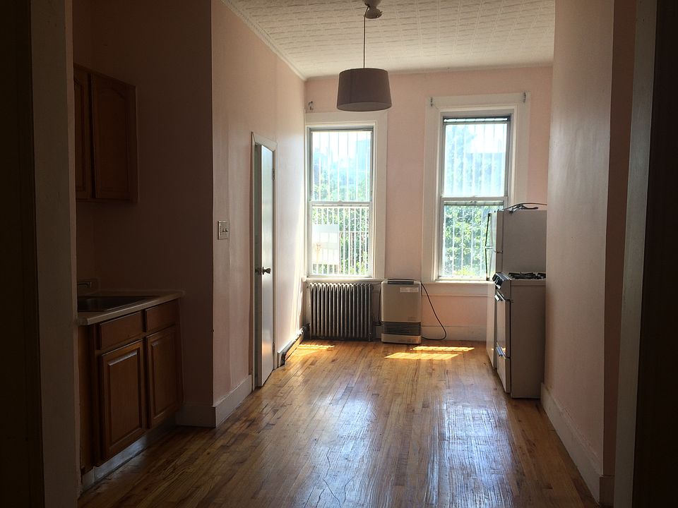 Great deal on this HUGE 2 bedroom railroad. Huge, as in massive space. Large eat in kitchen, living room, 2 bedrooms. You walk through one to get to the next, but the front bedroom has a separate door to the building hallway so it can be a little more private. A home office would also work really well. Heat and Hot Water Included. Great location off Knickerbocker near City Fresh Market, Maria Hernandez Park. LA Burrito, tons of restaurants, nightlife, and shopping. No broker fee.