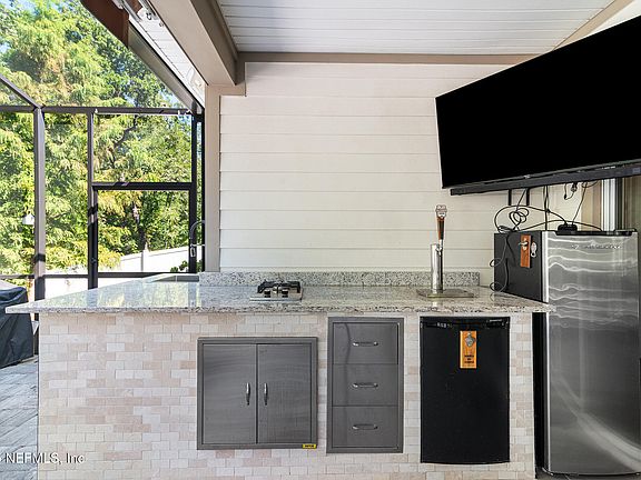 Tiled garageBeautiful outdoor kitchenScreened patioExtended paversOpen concept kitchenShower enclosuresPerfect yard size