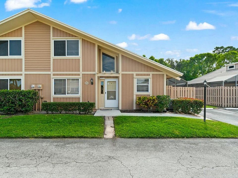 THE BEST DEAL IN JUPITER!! OVER 2,000SQFT IN JUPITER!!!! NEWER 2020 Roof and 2017 HVAC!! The spacious townhouse features four bedrooms and three full bathrooms. Enter through the foyer to an expansive living/dining space with vaulted ceilings and sliders leading you to private screened in outdoor space. Off the living room on the main level is a primary suite with ensuite bathroom. Across the split floorplan you will find the other main level guest bedroom. As you head upstairs you will find the additional two guest bedrooms along with a full bathroom, and BONUS loft- space perfectly fit for a second living area or home office. Located in Jupiter's excellent A-rated school district! Don't miss this one!