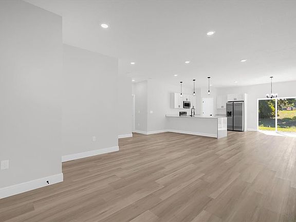 Don’t miss this incredible opportunity! Welcome to this stunning brand-new construction offering 1,865 square feet of thoughtfully designed living space. This modern 4-bedroom, 3-bathroom home features an open-concept layout filled with natural light, luxury vinyl flooring throughout, and high-end finishes that elevate every corner of the interior. The contemporary kitchen is a true highlight, equipped with quartz countertops, stainless steel appliances, sleek white cabinetry, and stylish pendant lighting above the expansive island – perfect for both everyday living and entertaining. The spacious primary suite offers a private retreat, complete with two walk-in closets and a spa-inspired bathroom featuring a freestanding soaking tub, a separate tiled shower with matte black fixtures, and a double vanity with quartz countertops. The additional bedrooms are generously sized, each with access to beautifully designed full bathrooms, providing comfort and privacy for family members or guests. The laundry room includes hookups for a utility sink and offers plenty of space for storage and convenience. Step outside through the sliding glass doors to a large backyard, offering ample space for entertaining, relaxing, or future customizations. Situated on a quiet street, this home delivers privacy, comfort, and modern elegance in one complete package. With no HOA restrictions, a two-car garage, and a long driveway, this property is ready for you to move in and enjoy all the benefits of new construction in a growing area.