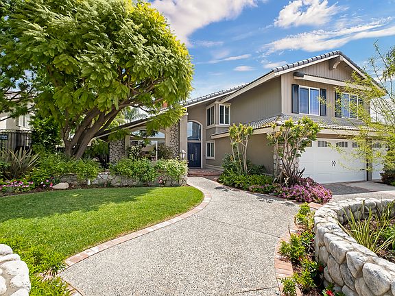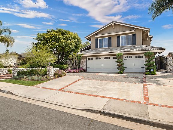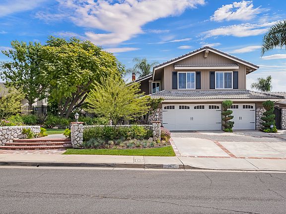From the moment you arrive, you will absolutely love this stunning home nestled on a private cul-de-sac in the highly desirable Eagle Hills community of Brea. The custom kitchen features stainless steel appliances, slide-out spice and towel racks, self-closing cabinets and drawers, granite countertops, and an island complete with its own sink. The kitchen opens to a dining area and family room with a fireplace, perfect for family nights in. A formal dining room, wet bar, and family/game room with wine fridge and fireplace with designer mantel makes entertaining family and friends a breeze. The luxurious master suite has a cozy sitting area, large walk-in closet with custom built-ins, and French doors that open to a private balcony overlooking the hills. The master bath has double sinks with marble countertops, jetted tub with temperature control and colored lights, and a large, walk-in shower with a seat. Even the laundry room is custom and sumptuous, with granite countertops and a jetted sink. Get ready for plenty of parties and barbecues for years to come in the tropical paradise of a backyard, with a built-in barbecue , fruit trees, and gorgeous pool with two waterfalls, fenced for safety. Parking is never an issue with the attached, three car garage. Ideal location in the award-winning Brea-Olinda school district, close to Downtown Brea, the Brea Mall, Birch Street Promenade, and the 57 Freeway. Hurry! Homes in this excellent area do not last!