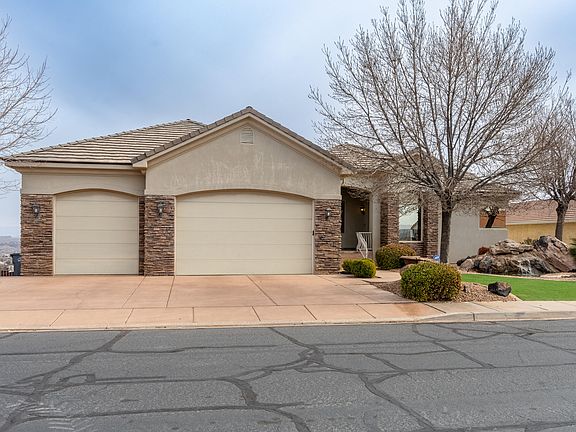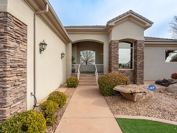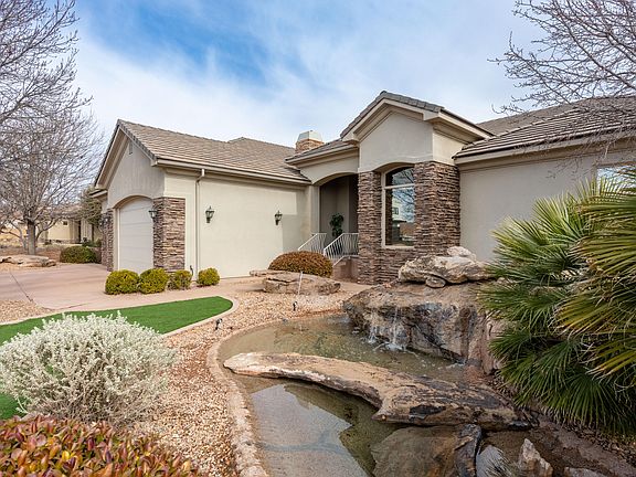 Welcome to this stunning East Ridge home! Offering exceptional living spaces and unparalleled views. The home greets you with it's water feature, 3-car garage and artificial turf, guiding you up the steps to the front door. Step inside to discover a thoughtfully designed, beautifully lit interior featuring sleek travertine flooring throughout. The kitchen boasts granite countertops, stainless steel appliances, an island for entertainment and more views! All the appliances are included, and the home offers a water softener and water purifier. Home is adorned with 3 fireplaces! The main living room fireplace is a furnace, so it's ducted to the whole upstairs and the other 2 are standard. The master en-suite, complete with sweeping views, a cozy fireplace, a walk-in closet, and a spacious bathroom that includes a walk-in shower, soaking tub, and dual sinks. The lower level provides a separate living space, featuring a second kitchen, an additional master en-suite, a family room, and a large bonus room - all with more breathtaking views. Unwind and enjoy the beautiful city views from either the covered deck or patio.