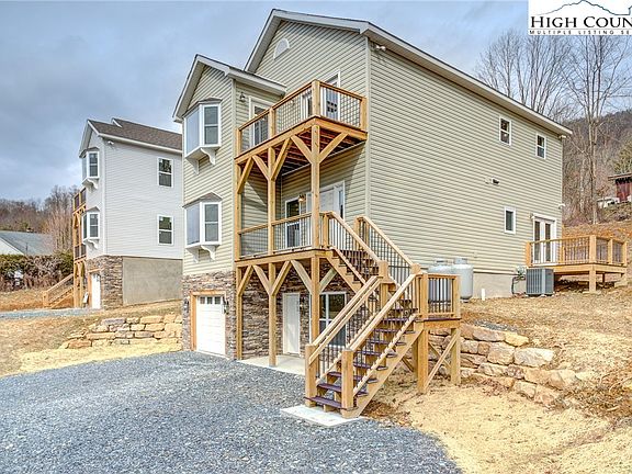 Price just reduced to $649000.00.This is a new home complete in January 2023 with many upgraded and unique features, including granite countertops in kitchen and baths, huge seated bay windows in den and bedroom #3, balcony with double French dooors off master bedroom, nook off kitchen with eat-in island bar,double French doors to large deck off bedroom #4, and large master bedroom with his and hers walk-in closets. Stainless steel appliances including professional style gas range, large 3 door refrigerator, oven and microwave. Tiled shower in master bath. Spacious !st level living area includes large family room, dininig/social room, and den with glass French doors off family room.,Trex composite flooring on all decks and balconies. Basement has large living area and full bath with 5' shower, ovrsized single car garage and separate entrance. Foundation walls are poured concrete in styrofoam insulation forms which make garage/basement very dry and easy to heat and cool. Pull down stairway to floored attic area to provide extra storage. Ample driveway/parking area to accomodate mutiple vehicles. Great location within easy walking distance to downtown Boone and ASU campus.