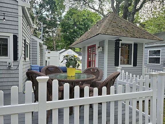 Not on leased land! Nestled among trees and beautiful gardens and within short distance of Deeded Beach, this rebuilt open concept cottage is the ultimate escape. The inviting front deck, screened in porch, and fire pit allow for the best of outdoor living. Inside, the living room is centered by a stone fireplace and wood pine walls. Large comfortable bedroom with spacious loft. Every detail has been attended to. Electric, plumbing, roof, windows, new bath, new kitchen, new appliances, to mention a few. (list attached), The warm and inviting atmosphere will make you want to never leave. Salt Air Village is a wonderful seasonal community that offers ball fields, fishing pond, and activities where life long friendships are made.