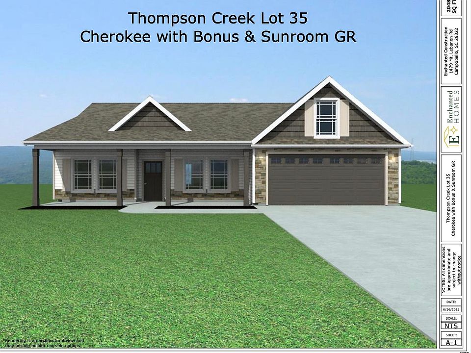 Preferred Lender/Attorney Closing Costs Incentive Offered! Welcome to Thompson Creek! The Cherokee plan offers a beautiful, modern layout. Split floor plan. Kitchen open to dining area. Home complete with builder trademark chair rail, crown molding, and rope lighting. Luxury Vinyl Plank/Tile flooring in all areas with exception of carpet in bedrooms. 12x12 sunroom and Covered 12x12 back patio. Granite counters throughout. Lot 36