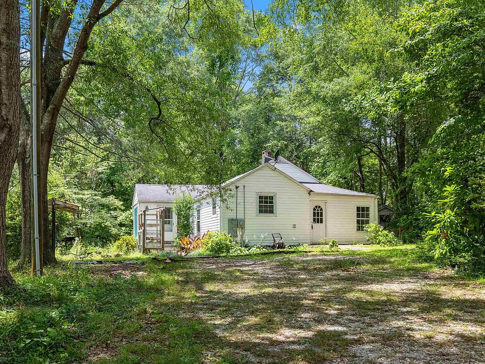 No fault of the sellers! Back on the market! Fantastic opportunity to own a quaint home plus just over an acre of land, with no HOA or restrictions between Greenville, Travelers Rest and Furman University. Set back off the road, you enjoy the privacy of the wooded lot in the front and sloped garden in the back. This 2 bedroom, 1 bath house has been so loved and the land nourished with the addition of gardens, trails and a pond. Interior has newer appliances and flooring. Home needs a little TLC and is being strictly sold as is, with no repairs made by the sellers.
