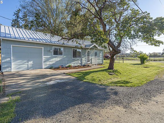 Freshened up and ready for a relaxing summer! Layout feels much larger than it is, spacious kitchen with ample cabinetry and new appliances. Charming dining nook and living room with large windows and landscape views. Built ins throughout preserve the original character and provide nice functionality. New LVP flooring, exterior/interior paint and trims. The greatest yard on a large corner lot, including a fenced pasture and established trees. Property includes two lots on original plat map, buyer do diligence on possibilities of future development or expansion. Stepping in this home you can feel a solid quality under your feet. Ready for it's next owner to love it as many years as the previous one did. Perfect opportunity for a small town lifestyle, with a very short walk to downtown and the river. Or even would make a fantastic weekend getaway home, located centrally to the beach, casino, wineries, McMinnville, fishing, hiking, you name it. Taxes under 1k a year!