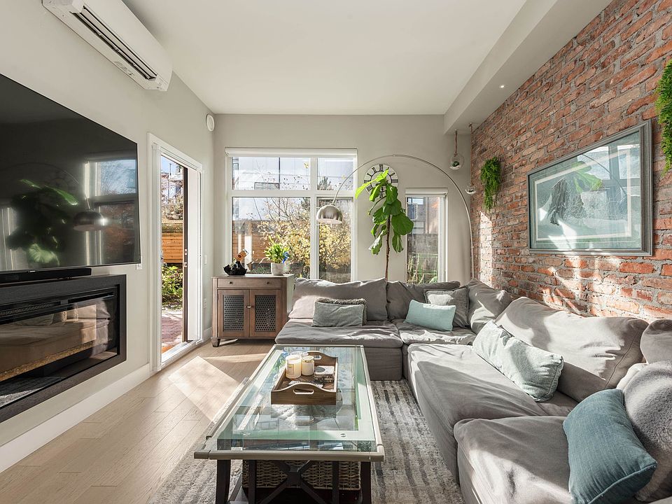 Expansive open-concept layoutHigh ceilingsReclaimed brick feature wallCozy electric fireplaceGourmet kitchenGas rangeAbundant storage