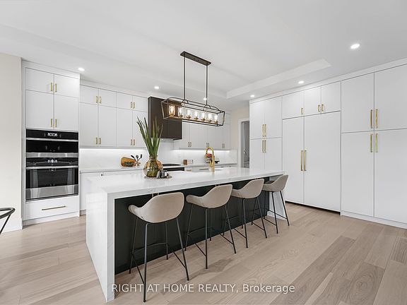 Experience luxury in this modern Willowdale West residence, showcasing a chefs kitchen with a waterfall island, custom cabinetry, and high-end appliances. Enjoy the elegant executive office, spa-inspired primary ensuite with soaker tub and rain shower, and custom walk-in closets. Each bedroom features its own ensuite, while the finished basement with 11-ft ceilings adds versatile space. Backing onto open space with no homes behind.