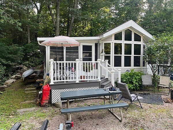 Seasonal Park Model Home with Lake Access and Private dock. Located at Pachaug Pond, Griswald Ct. Escape to this charming, adorable fully furnished 1-bedroom, 1 -bath seasonal park model home. Offering both relaxation and adventure, this property is perfect for summer getaways. Spacious and comfortable can sleep up to 8 guests, with a full enclosure providing plenty of room for friends and family. Modern and fully functional kitchen with plenty of storage. Private lot just four streets from the pond. easy walk to the pond and your private boat slip. Enjoy endless water fun, boating, jet skiing, tubing, fishing and swimming at 2 private beaches. HOA $260/month covers water, electric, sewer, pump out, dock installation/removal, trash and park maintenance and clubhouse. Owners responsible for propane, cable and the taxes. Friendly family park that also offers a clubhouse for fun get togethers. Don't miss out on this seasonal beauty. 817 acre body of water. 122 site campground. This is a seasonal home. April-Oct. Monthly HOA is $260. Includes everything except propane, taxes and cable. This unit is the only street on sewer. Karin is the owner of the property and also a real estate agent in Ma and RI. Laundry on premises. Bath houses with showers available on grounds. Park has right of first refusal.