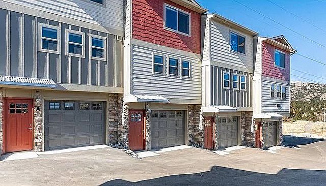 Large Townhome located in the heart of Estes Park! Sidewalks and paved streets for your ease in getting around by bike, foot or vehicle. This property has room for everyone. 3 level property with an additional garden level suite with attached 3/4 bathroom on the main level and a 1 car attached garage with storage area under the stairs. Head on up the stairs to the welcoming living room and kitchen area with private attached balcony for viewing the mountains and wildlife while cooking in the modern kitchen. Washer and dryer included already in the unit and an additional half bath right off the kitchen. Go up to the 3rd level and there you will find 2 bedrooms each with an attached bathroom for ultimate privacy and convenience. No sharing bathrooms! Offering to allow a small pet with additional pet deposit and pre-qualification. Parking for 2 vehicles is a breeze, 1 in the garage and 1 in the assigned parking space out in the lot. Unit has been cleaned and had full carpet cleaning for immediate move in. Exceptional value for the price! Lower electric costs due to solar panels on the building to help keep your budget in tact!