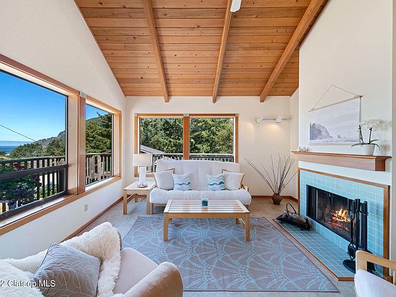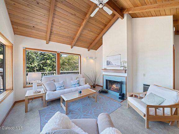 Ocean-Mountain Views! Lounge by the fire and watch gorgeous ocean sunsets and clouds drifting over Neahkanie Mountain. Enjoy outdoor living and the sound of the surf from 900 sq. ft. of beautiful cedar deck. This bright and airy Classic Ridge getaway sits above the tsunami zone by a woodsy trail down to the beach. With all new stainless appliances, luxury vinyl tile and fir floors, vaulted T&G ceilings, and views from all the main rooms, this Northwest beauty offers custom craftsmanship and 2,000 sq. ft. of understory for your storage and expansion dreams.