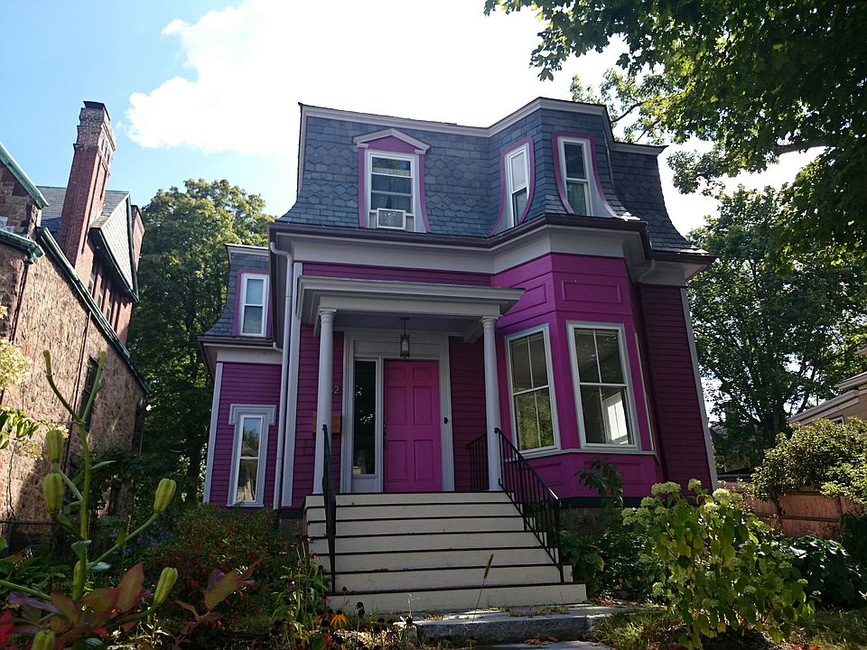Pill Hill Historic District. Charming slate mansard roof Victorian circa 1860. High ceilings & tall windows. Maple floors. Original staircase and details.1st flr: playroom off 2008 kitchen plus den, 1 bedroom, & full bath. 2nd floor: 3 bedrooms and 2 newer baths. Large yard, gardner's delight with flowers, fruit trees and berries. Two patios. Near Medical Area, Lincoln school, Brookline Music School, BHS and close to public transportation.