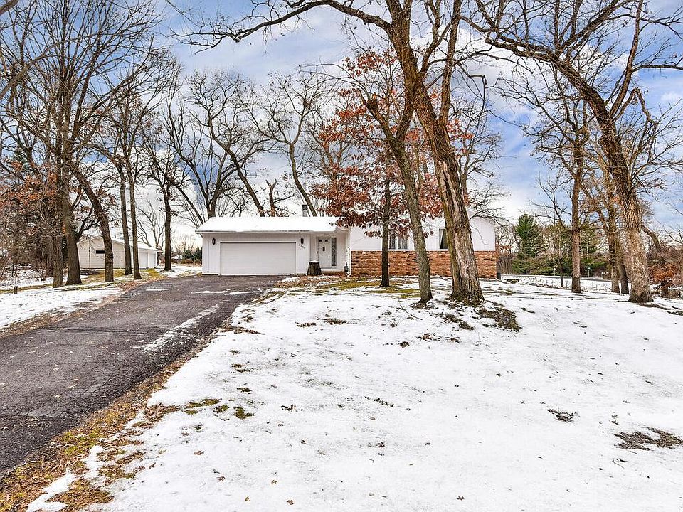 L-shaped rambler situated on a gorgeous 2.49-acre corner lot gives you a private country setting in the heart of the suburbs! Seller has made many improvements in 2020 which include new flooring throughout main level (except bathroom which has ceramic tile), new carpet for stairs and lower-level multipurpose room, new furnace and central air (electric baseboard heat retained as a supplemental heat source), new electric panel, new patio door in lower level, new front storm door, new exhaust fan/light combo in bathroom, new overhead doors on the detached garage, new electric fireplace insert installed in LL fireplace. Lower level has potential for a 4th bedroom (incl closet) and future bath (roughed-in plumbing). The additional detached three-stall garage will hold all your toys or could be used as a workshop. Don't overlook the playhouse/garden shed and garden plot already established. Quiet, walkable neighborhood, close to the park.