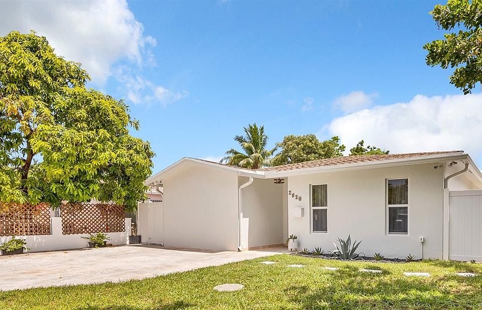 Welcome to this beautifully renovated 4-bedroom, 2-bath home in East Hollywood! Step into the oversized living room, perfect for entertaining, with flat ceilings and new flooring that add modern elegance. A versatile den works as a home office or game room. The updated kitchen boasts stainless steel appliances, an eat-in bar, and a separate dining area. Bathrooms feature a sleek black-and-white design with clean lines. Outside, enjoy a spacious backyard—large enough for a pool—already outfitted with artificial grass, seating area, fire pit, and awning. Ample parking makes hosting easy. Move-in ready and designed for comfort inside and out! Close to downtown Hollywood and the beaches.