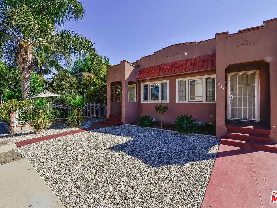 Charming Spanish Duplex in sought after West Adams neighborhood. Great for an owner user or an investor offered with one vacant 2 bedroom front unit. Future potentials abound for a re-imagined development or a re-designed single family residence.Previously constructed guest quarters in garage has been partially dis-assembled and awaits the new buyers imagination.