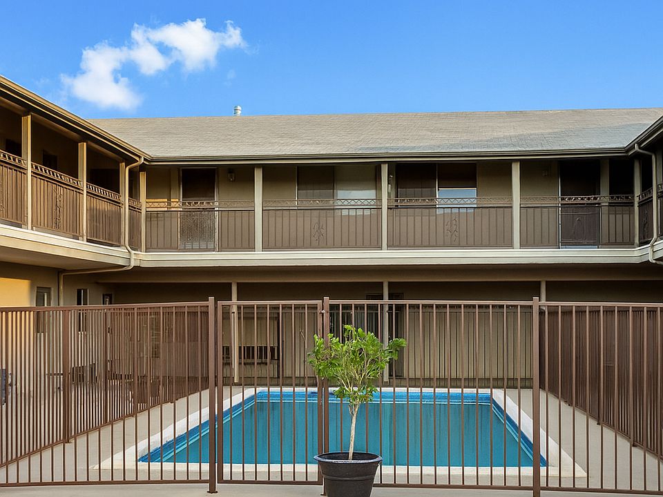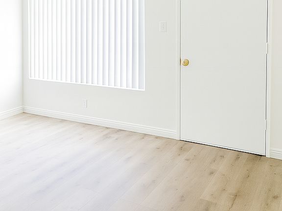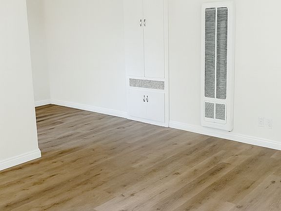 This downstairs two bedroom one bath apartment includes fresh paint, plank floors, stove, large closets and an attached garage. Located in a gated building with a swimming pool and community laundry room.