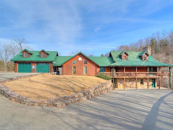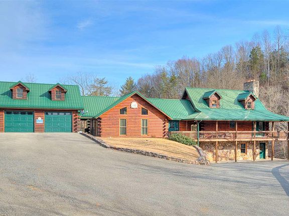 On the shore of Claytor Lake. This rustic cabin is situated on a 1.39 acre lot [and 2 half acre lots] located 3 miles from Hwy I-81 [near the New River Trail and Draper Mercantile]. Over 200 feet of shoreline, Upper decks, lower deck, fire pit, jet ski lift, long dock and floating dock. Main level has an open interior with an enormous master suite, two stone fireplaces, large kitchen with island, ceramic and hardwood flooring and an over-sized two car garage. Lower level is a "mother-in-law suite". Upper level has a bed, bath and loft sleeping area. Sleeps 10 in all. Two adjoining lots also have access to the lake.