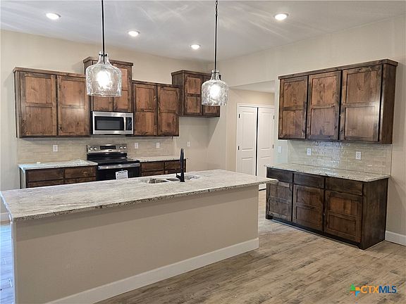 Move in to luxury in this stunning new construction home by Eagle Homes located in the highly sought out Hubbard Branch Subdivision in Belton. This open split floor plan has all the comforts from high tray ceilings and recessed lighting to a fabulous gourmet island kitchen with granite counters, pantry, stainless steel appliances, and custom cabinets. The great room is open to the island kitchen and the breakfast bar. The large owner's suite has a spacious bathroom with 2 closets, large free standing tub and ceramic tile shower. Minor bedrooms have huge closets and/or walk-in closet. One bedroom has its own private bathroom. Large three car garage, upscale moldings and ceramic tile in all wet areas. The home has one of our largest covered patios perfect for entertaining, programable sprinkler system, privacy fence, full sod, low maintenance shrubs, and so more more are just standard features Eagle Homes provides. Come out and visit our homes in Hubbard Branch, Belton ISD. Spray foam insulation!!!