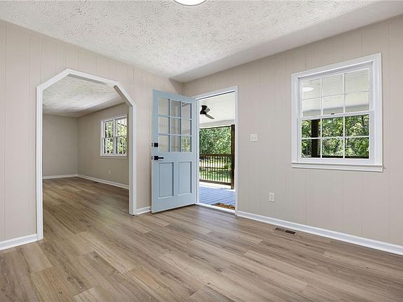 Discover your own private homestead on nearly 4 acres in sought-after North Paulding. This beautifully renovated single-level home offers three spacious bedrooms, two modern bathrooms, and a sunroom. With over $85,000 in improvements, every detail has been thoughtfully updated, including new LVP flooring, kitchen cabinets, appliances, bathrooms, lighting, PEX plumbing, HVAC, and septic. A two-car garage provides both convenience and storage. Outdoors, the lifestyle is unmatched. The enclosed garden is ready for your vegetables and flowers, while trails wind through the 3.7 wooded acres for you to explore. Deer make nightly visits, adding to the peaceful atmosphere, and both the covered back porch and the rocking-chair front porch provide relaxing spots to enjoy the surrounding nature. With no HOA restrictions, this property offers the freedom to create the homestead you’ve always dreamed of while still being close to top schools, parks, and amenities in North Paulding. This rare opportunity combines modern comfort, privacy, and room to grow—inside and out.