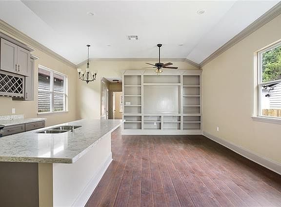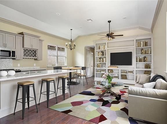 Stunning 8 year old single family home with an open floorplan! Fabulous kitchen with a center island and stainless steel appliances. High ceilings, custom built-in entertainment center in the den. 2 independent bedrooms with closets galore!! En suite primary bedroom w/custom built-ins in the walk in closet. Electric gate for private parking! Sweet front yard w/porch. Extra large 150' deep lot! Easy access to downtown & Elmwood! Vouchers not accepted