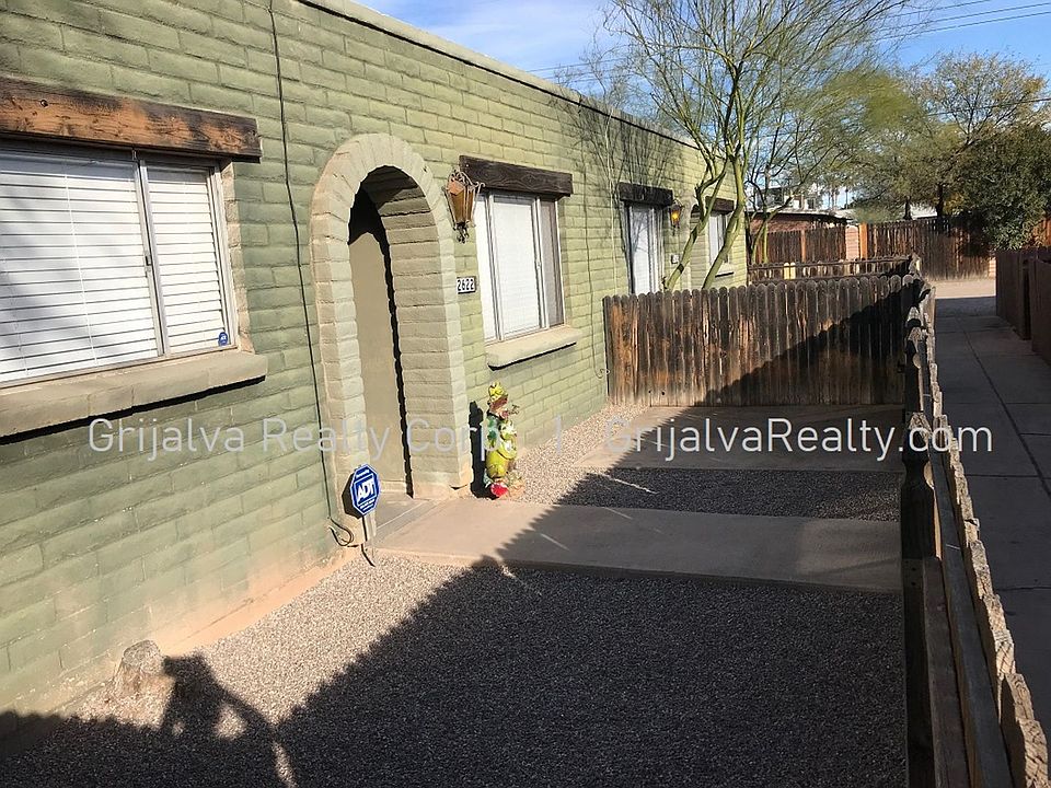 This roomy 1000 sq. ft. 2BR, 1BA unit features ceramic tile flooring throughout. AC. Kitchen includes a stove and refrigerator. Primary bedroom has walk-in closet. Indoor laundry room with washer and dryer hookups. Unit has a fenced front yard and fenced back patio with extra storage unit. Off-street parking close to unit. ** MOVE-IN SPECIAL! $500 off first full month rent. ** Tenant pays gas and electric utilities. Water, trash and sewer included. Small pets (under 20 lbs.) allowed pounds with a $250 pet deposit plus $25/month pet rent per pet. (Dogs not allowed to remain in front yard.) This unit is governed by community rules & regulations. Directions to property: from Glenn and Alvernon, go north on Alvernon, Turn left on to Flower and then right onto Winstel. Continue to address. Property is on the right. Availability and price subject to change without notice. One owner is a licensed real estate salesperson in the State of Arizona.