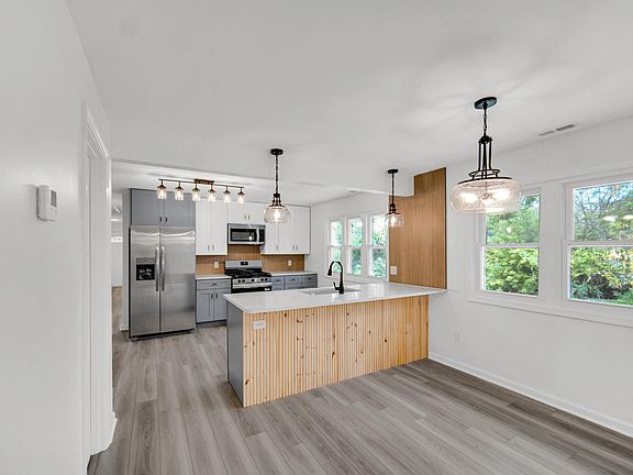 This Renovated 4-Bedroom Home is a Gem with Modern Charm & Privacy! Welcome to this stunning 4-bedroom, 2-bath home, thoughtfully renovated! Tucked away on a quiet, well-kept street, this property blends timeless charm with sleek, modern upgrades. Inside, you'll be greeted by a bright, open layout and brand-new finishes throughout. The kitchen is a true showstopper featuring new stainless-steel appliances, natural stone countertops, sleek cabinetry, and a spacious peninsula perfect for cooking, hosting, and everyday living. Outside, enjoy a front or back deck, lush lawn and a roomy 2-car garage. With all new forced air furnace and duct work, cooling system, plumbing and electric and a move-in-ready status, this home offers peace of mind from day one. Located at the end of the road, you'll love the added privacy and minimal traffic ideal for quiet evenings and safe outdoors.