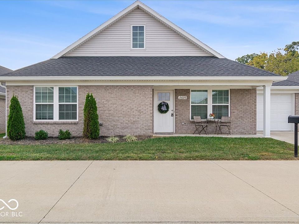Welcome to this pristine 2 bedroom, 2 full bath ranch-style condo in the desirable Hickory Trace community on Evansville's vibrant east side. Built in 2022, this like-new home offers contemporary design, energy efficiency, and truly low-maintenance living. The open floor plan features a spacious living room, space for dining, and a well-appointed kitchen complete with granite countertops and backsplash, stainless steel appliances, a breakfast bar, and ample cabinetry-perfect for daily living and entertaining. The primary suite offers a generous walk-in closet and a private bath with a walk-in shower with glass doors. Second bedroom, also with a walk-in closet, is ideal for guests or a home office. Additional highlights include an attached one-car garage, energy-efficient tankless water heater, and EV charger. Relax on the covered front porch and enjoy a carefree lifestyle with the HOA handling lawn care, snow removal, exterior maintenance, and more. Conveniently located near shopping, restaurants, and top-rated schools, this home is move-in ready and perfect for those seeking comfort, style, and simplicity.
