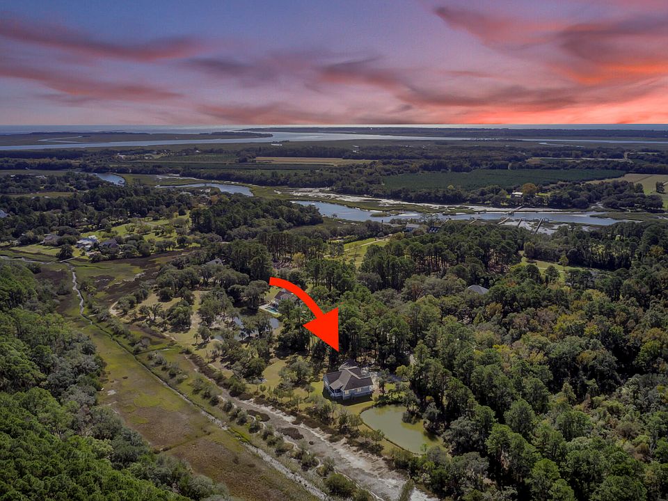 Discover southern charm & the ultimate Lowcountry lifestyle in established Royal Oak. The private road flanked by mossy live oaks leads you to this 2017 custom built home on 6.26 glorious acres! This marsh front property backs to the tidal creek, boasting its own sparkling pond! Surrounded by serene woods, this sub dividable lot offers spectacular 360 views! Sip sweet tea while rocking on your Carolina porch or relax with an evening cocktail & watch the sea birds from the spacious screened porch! Enjoy fireside marsh front chats from the fire pit seating area. Boasting 4 garage spaces (2 attached & 2 detached) & a long driveway for overflow parking, storage options are endless! Bring your boat or RV! Featuring dual owners' suites, one of which makes the perfect mother-in-law quarters,find two additional main floor bedrooms (one of which is currently set up as a workshop, but owners are happy to remove cabinetry & return it to its original condition). The designer kitchen is the show stopper! Offering a huge island with countertop seating, gas cooking & amazing upgrades, you'll never want to leave! The home also features separate dining & a designated office. Main level owners' suite provides outside access to the screened porch & yard. The focal fireplace is the centerpiece of the open floor plan. Shopping & dining at Freshfields Village, to include a nice grocery, is less than 10 miles away! Beach access at Beachwalker Park at Kiawah Island is just 20 minutes from the home. You'll also be just a few miles from plenty of restaurants, bars & live entertainment at nearby establishments. Properties like this are rarely available, so don't miss your opportunity to live the quintessential coastal life on Johns Island!