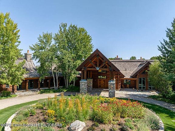 Designed by Berlin Architects and built by Weber Construction, one of the premier log home builders in Jackson Hole, the home features full-scribed interior wood chinking and log diameters of up to 18 inches.