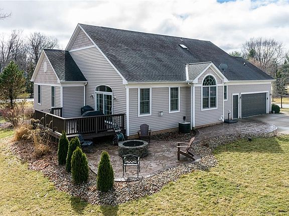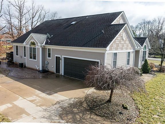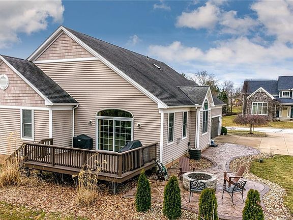 Amazing opportunity to own a newer modern home in Hudson! This former model home is one of a kind and is conveniently located in Stonecreek Reserve, minutes from downtown Hudson and Kent! The expanded Cape Cod design offers a modern open floor plan, soaring ceilings, and even a hard to find first floor master suite! The main floor consists of a 2-story great room w/hardwood flooring and gas fireplace, huge built in book shelves and slider to a spacious deck overlooking the pond. The gourmet kitchen is appointed with maple cabinetry, island, stainless appliances (all included, as well as a trash compactor!), large pantry & granite overlay countertops, and a breakfast area/dinette. The private 1st floor master suite has a tray ceiling, 2 closets + a walk-in closet, glamour bath w/jacuzzi tub, double sinks and shower w/tile flooring. The formal dining room is showcased with pillars & skylights for tons of natural light! Main level is competed with a dedicated office w/hardwood flooring and palladian windows at the front of the home, as well as a first floor laundry/mud room. The second level offers 2 ample bedrooms w/walk-in closet, a full bath, plus a loft with built-in shelves and bonus room! Outside in addition to the rear deck there is a new stamped concrete patio complete w/gas fire pit! Recent updates include: water heater (2017), gas fire pit (2017), dishwasher (2017), patio (2016), hardwood flooring (2012), carpeting - master, hallway/stairs (2012). Schedule today!