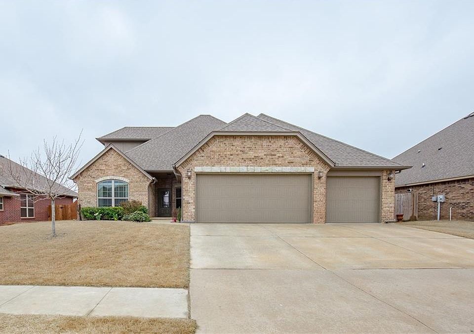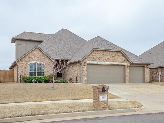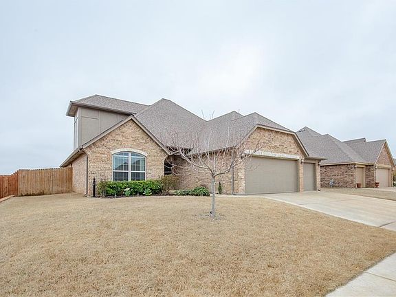 Amazing 4 bedroom, 2 living room, 3 car garage home on a great lot in the gated Castlebrook Crossing! HUGE backyard w/ covered patio & easy access to the community pool! Large living room has beautiful gas fireplace & is accented w/ crown molding. Open to the spacious kitchen built-in gas stove, beautiful travertine & glass tile backsplash, custom cabinets w/ tons of storage & counter space. Master suite is very spacious & features a stunning trayed ceiling w/ up-lights. Master Bath has double vanities, walk-in shower, whirlpool tub & walk-in closet. All secondary bedrooms are very large w/ ample closet space. 4th room would make a good bedroom or study! Large bonus room has a 1/2 bath & easy attic access ~ decked for additional storage! Yard is fully fenced w/ a storage shed & has a gate w/ direct access to community pool! Perfect location w/ easy access to I-40, Hwy-152, Kilpatrick Turnpike! Welcome home!