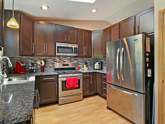 Welcome home to this spacious and attractive split-level 3 bedroom/2.5 bath home. The home boasts a bright eat-in kitchen w/skylight, w/breakfast bar, 42-inch cherry cabinets, granite counters, and glass backsplash that overlooks your family room! The master suite has a walk-in closet and a private bath with jetted tub. Huge fenced-in yard w/deck that is perfect for entertaining and enjoying quiet summer nights. The partially finished walk-out basement is waiting for your ideas to complete the space and make it your own! Minutes from Gurnee Mills, parks & highways.