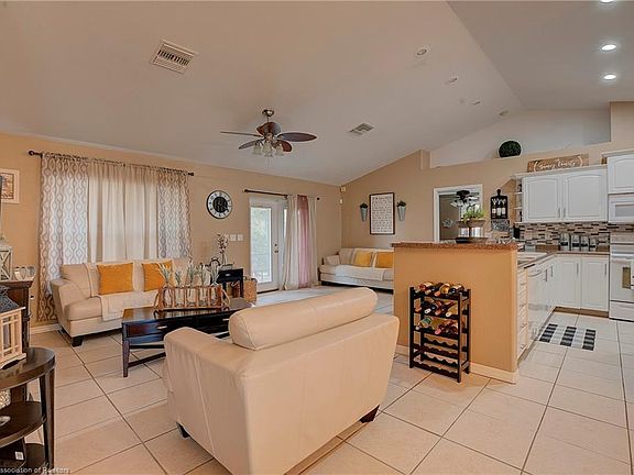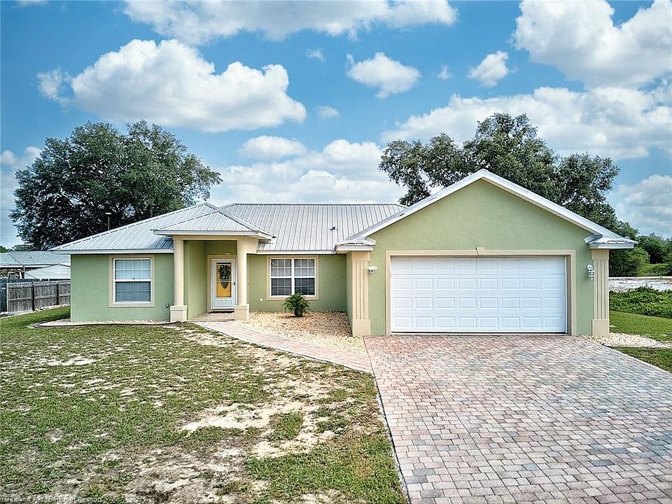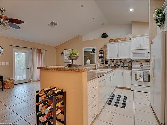 Looking for the perfect pool home just in time for the summer? Well here it is! Check out this meticulously maintained 3 bedroom, 2 bath pool home with awesome open floorplan. Brick paver driveway leads you inside this beautiful home. Vaulted ceilings and tiled flooring throughout the main living area with carpet in the 3 bedrooms. The kitchen features white cabinetry with modern hardware, tiled backsplash, white appliances, solid surface countertops, walk-in pantry, and a large bar top area perfect for entertaining. Formal dining room just off the kitchen and spacious living room overlooking your gorgeous pool area. Huge master bedroom with attached private bathroom boasting dual vanity countertop, walk-in shower, and walk-in closet with built-in shelving. The two guest bedrooms share the guest bathroom on the other end of the home. Walk out your back French doors to your covered/screened patio and pool area! You will seriously not be able to get enough of this great space! 9X26 covered patio area is the perfect place to relax after swimming all day in your heated spa and pool! The interior and exterior of the home have been freshly painted as well! Attached 2-car garage. Come view this stunning home today!