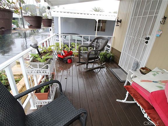 Welcome home to this cute 1976 double wide mobile home with many upgrades. This 2 bedroom with 2 bathroom mobile home is located inside a senior fifty-five plus; City of Los Angels Rent Controlled community. Low Space Fee - call for details. Enjoy sitting on your front porch taking in the gentle breeze that comes through in the afternoon. Or garden in your private fenced yard or in the many planters around your home. There are wood laminate floors throughout, with tile in the hall bathroom. Master bedroom is special with a walk-in closet, and a private door with access to back of unit and back yard. The Master Bathroom has a ez walk-in tub, upgraded vanity, electrical and plumbing. You'll appreciate the many other upgrades included like dual pane windows, a 3 year old roof to new appliances; flooring, painted inside and out; and so much more. Seller will provide buyer a home warranty. Newer Treks porches in front and carport entry; the wheelchair lift twith management approval (park owned equipment) the buyer may request it stay if buyer requires one. Utilites are extra. Shown by appointment only!! Do not walk on property without listing agent present. Please do not disturb residents. Thank you