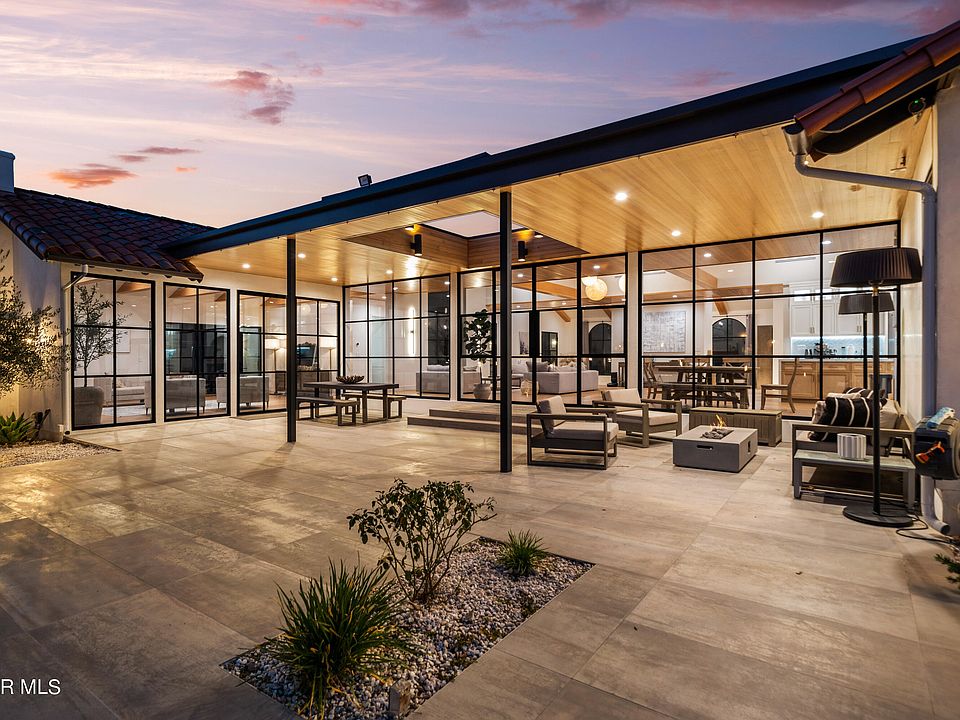 This modern spanish home was completely re-designed without sparing on cost or materials. It includes 5 additional en-suite bedrooms that provide plenty of space, while a detached 1,400 sqft modern spanish guest house is ideal for an office, gym, theater or private retreat. The home includes an open floor plan with white oak flooring throughout the house, finest tile finishes, automated toilets and Viking appliances. Entertain in the chef's kitchen with a custom glass wall to see the beautiful mountains of Santa Clarita. The family room includes a glass wall that allows you to see your exotics or classic vehicles while you sit and drink your favorite wine. Relax in the resort-inspired primary master bedroom with an oversized custom window facing the mountains. The master bathroom is designed to feel like you're in a tropical resort with a large soaking tub.Outside you'll find several lounge areas, covered courtyard, tennis court, and sparkling pool with Jacuzzi. The most amazing part is the large deck underneath the magical oak tree that includes night lighting for the perfect entertainment. The property includes a garden of over 15 fruit trees for your enjoyment throughout the entire season. A detached 460 sqft foot pool house includes a sitting entertainment zone, sauna and a luxurious steam room.One of the best parts of this house is the 9-car garage for the perfect auto collector or car influencer. This can rarely be found in Los Angeles homes these days.The stars in this home are especially seen during the night, thanks to its unique location. Once you arrive in this 5-star resort home, you'll never want to leave this place again. Property is owned and can accommodate horses. Will consider renting for $35,000 a month.
