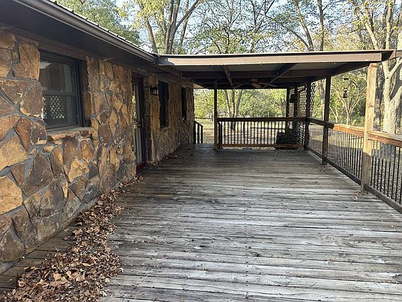 Two-car garageStone fireplaceNew flooringKitchen cabinetsBackyard porchBarbed wire fencesMetal posts