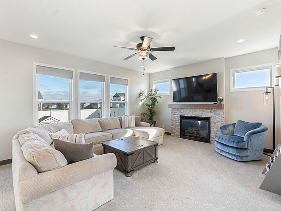 Better than new!!! This stately home, situated on a large corner lot in the coveted Arbors neighborhood, is in pristine condition and ready for you to move right in! With updates and upgrades abounding, this special property is one you've got to see! A soaring entryway welcomes you into the bright & open main level of the home. Plentiful windows allow the sunlight to pour in and make this level the cheerful hub of the home. The sizeable living area features a gas fireplace, transom windows, and opens to the generous dining and kitchen areas. The kitchen boasts an 8 ft island with seating for 4+, beautiful quartz countertops, subway tile backsplash, a coffee bar, and stainless steel appliances. The dining area can easily entertain a crowd, and the walk-in pantry is a dream! On the main level, you'll also find a 1/2 bath and a drop zone just off of the garage entrance. Sliding doors off the dining room lead to the lovely backyard oasis. A privacy fence, landscaping, and firepit area provide perfect respite and invite you to enjoy time outdoors with your friends and family. Upstairs, you'll absolutely LOVE having 4 bedrooms, 2 baths, and a laundry all conveniently located on one level! The primary suite is enormous and feels like a luxury escape with its custom shiplap fireplace, large bathroom with a soaker tub and dual sinks, and gigantic closet! Three more bedrooms and a bathroom provide plenty of space for everyone, and the charming 2nd-floor laundry room makes keeping up with laundry a breeze. Travel down to the basement of the home, and you'll appreciate the quality finishes and thoughtful floor plan that make this a wonderful bonus space. The lower level boasts a TV area with a custom fireplace focal point, a kids' hideout, a full bath, and more. This space provides ample room for hobbies, toys & games, relaxing, or recreation, and could also serve as a suite for guests, teenagers, or in-laws. The oversized 3-stall garage is fully finished, clean as can be, heated, and has an epoxy floor. There is so much to love here! No need to build when everything here is finished and ready for you to move right in and enjoy! With its convenient location, large corner lot, proximity to Aldrich elementary, pristine condition, and plentiful upgrades, this home is one you don't want to miss. Hurry and schedule your showing at this beautiful Arbors home today!
