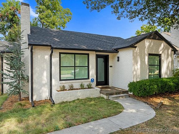 THE ONE! Nestled in one of Tulsa’s most coveted neighborhoods, this 2 bed, 1 bath midtown bungalow hosts high end finishes thru-out and is the perfect blend of historic charm & modern comfort. Just minutes from Utica Square, Cherry Street, The Gathering Place and more. This meticulous home includes a dream kitchen with stainless Forno gas stove, dishwasher and refrigerator that remain with the property. All eyes will be on the striking waterfall granite island, butcher block counters and custom tile backsplash. Easily step away from it all in your luxurious full bath! 2 spacious bedrooms accommodate large furnishings. Natural light flows throughout. Bonus: Custom electric blinds and plantation shutters. High-quality insulated Pella front door, thermal windows, Roof (installed July 2025). Interior laundry room with built in storage includes washer and high efficiency dryer. Finished garage with epoxy floor and storage shelves! Step outside to your private, fully fenced backyard w/ an oversized patio, mature trees and firepit. This showstopper has it all—location, design, and high end details. It offers the best of Tulsa living.